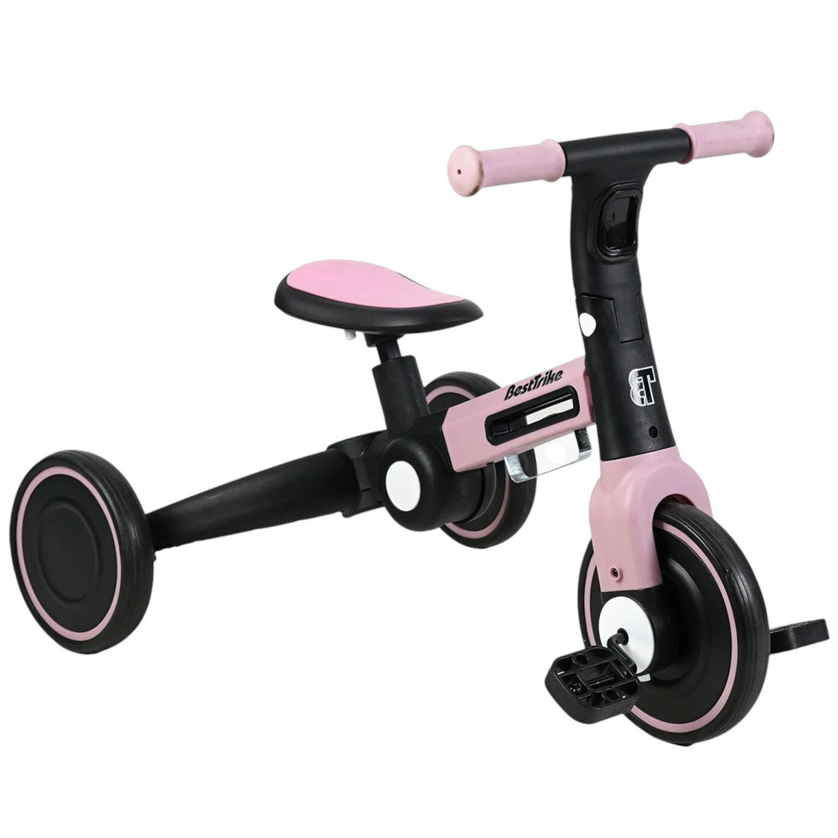 Першим транспортним засобом, який можна використовувати для дітей, є велосипед. Він дозволяє дітям активно проводити час на свіжому повітрі, під час катання на велосипеді вони можуть вчитися координації рухів та розвивати м'язи. Важливо обрати велосипед, який буде підходити за віком та зростом дитини, а також буде містити всі необхідні елементи для безпечної їзди, такі як гальма та противітаманні фари.